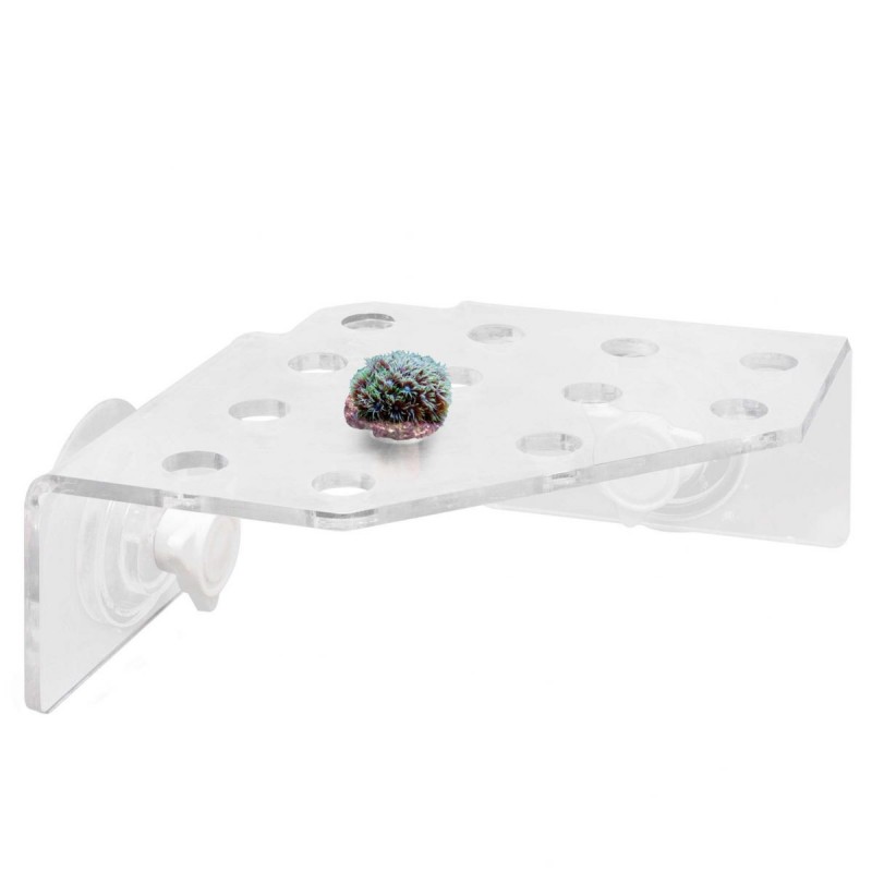 Estante para corales con 13 agujeros. En ellos podrás colocar hasta 13 plugs con esquejes de coral. El Coral Rack 13 está fabricado en acrílico de alta calidad y dispone de una ventosa de vacío de alta capacidad de succión lo que permite mantenerlo sujeto al vidrio del acuario con gran efectividad.