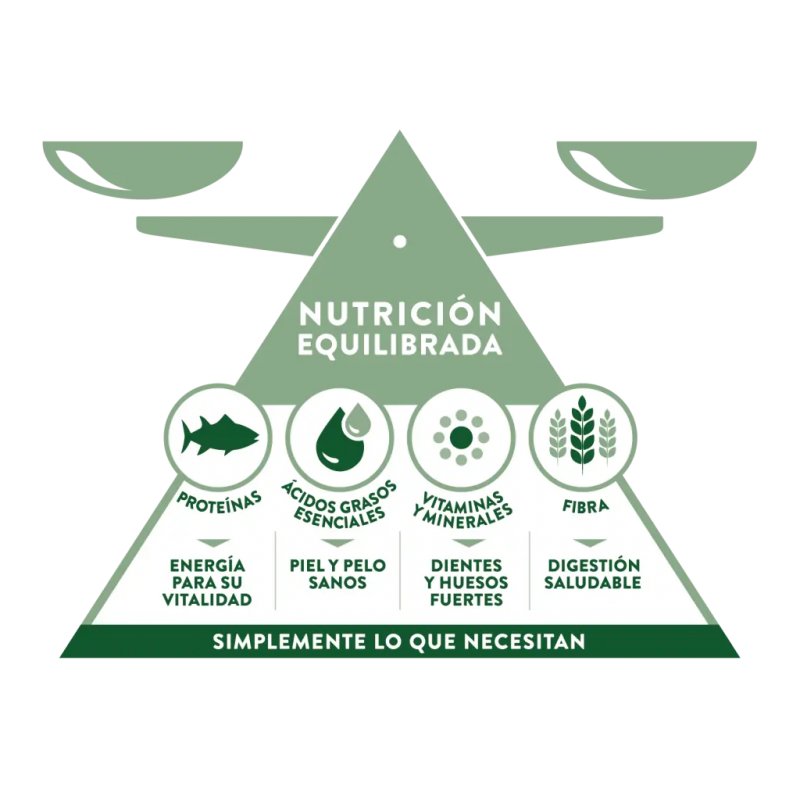 Sabroso alimento completo y equilibrado con Atún, que contiene una proporción óptima entre proteína, ácidos grasos esenciales, vitaminas, minerales y fibra que aportan el equilibrio nutricional que tu gato adulto esterilizado simplemente necesita.