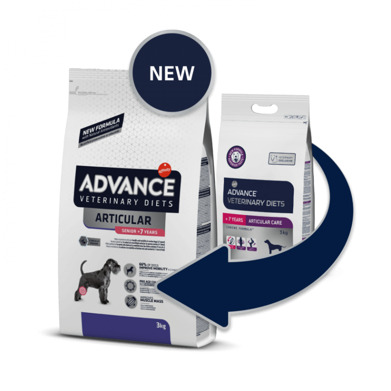 -ADVANCE VETERINARY DIETS ARTICULAR SENIOR es un alimento dietético completo y equilibrado, formulado para la recuperación y el apoyo nutricional al tratamiento médico de perros de más de 7 años
