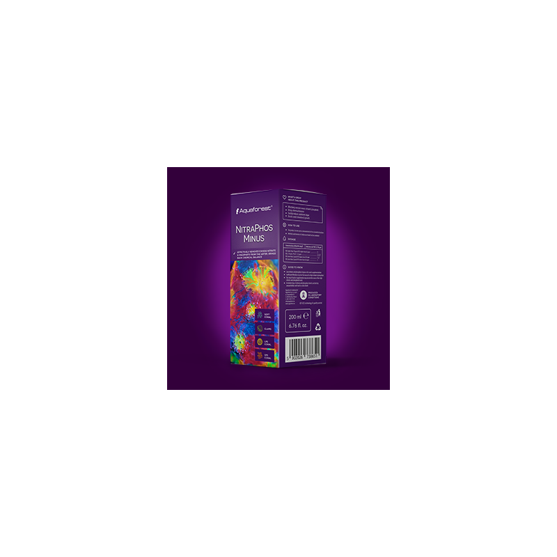 que son responsables del manejo y la eliminación del exceso de nutrientes. Gracias a la composición especial de múltiples formas de carbono orgánico, aminoácidos y vitaminas, todos los cambios bioquímicos ocurren sin problemas y las bacterias absorben fácilmente los compuestos para convertirlos en biomasa. Esa biomasa se convierte en un alimento valioso para los corales, mientras que el exceso y sus residuos se eliminan del agua mediante filtros o espumaderas. NitraPhos Minus mejora la condición general de los corales, proporciona una mejor coloración y promueve su crecimiento. Debido al mantenimiento del equilibrio biológico en el tanque, previene la formación de algas verdes indeseables y el desarrollo de cianobacterias.