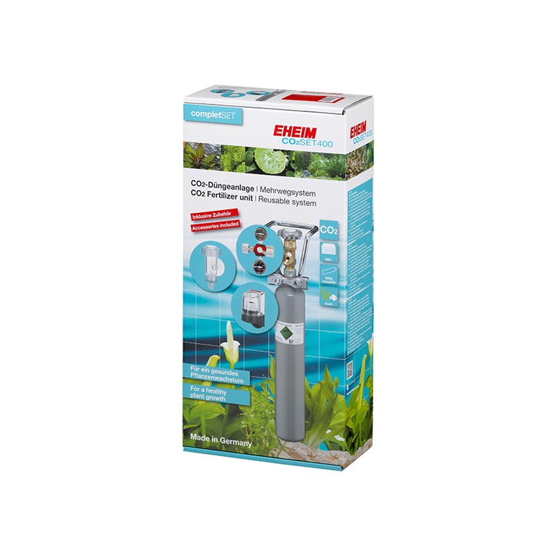 Uste recibe el set completo inclusive todos los accesorios necesarios. El montaje se realiza con unas pocas maniobras. Usted puede empezar de inmediato. Y, cuando la botella de CO2 está vacía, simplemente debe rellenarla de nuevo en especialistas autorizados. También es recomendable guardar una botella de CO2 de reserva o de repuesto (ver accesorios y botellas de CO2).EHEIM CO2SET400