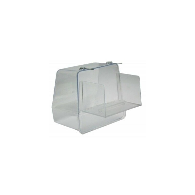 Bañera de plástico para colocar en el exterior de las jaulas de los pájaros, gracias a los enganches que dispone.