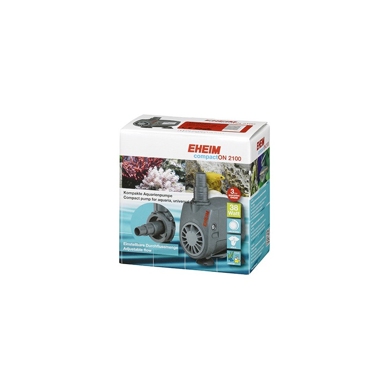 Las bombas para acuarios EHEIM compactON se caracterizan, de acuerdo con su nombre, por su construcción compacta y se pueden usar en múltiples aplicaciones gracias a los accesorios varios incluidos en el embalaje. Las bombas EHEIM compactON 2100-12000, por ejemplo, también pueden funcionar fuera del agua. Gracias a sus materiales de alta calidad también pueden usarse sin problemas en agua marina.