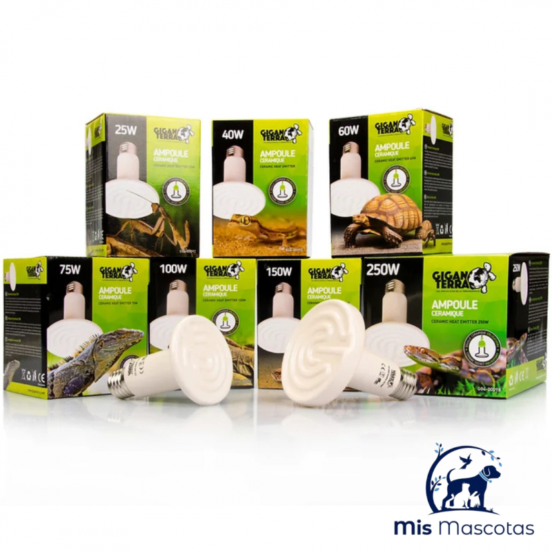 a lámpara de cerámica garantiza una temperatura ambiente sin emisión de luz, lo que no afecta el ciclo día/noche. Es necesario utilizar un termostato para regular la temperatura. Para evitar todo riesgo de quemaduras, asegúrese de que su animal no pueda alcanzar la lámpara.
