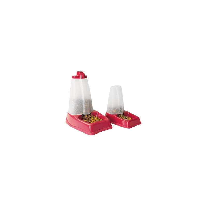 Con este dispensador de comida, tu mascota siempre tendrá su comida fresca y disponible. Fabricado de plástico resistente con tanque transparente para ver la cantidad de comida que resta. Máxima estabilidad asegurada con los tapones de goma antideslizantes que lleva en el borde inferior.