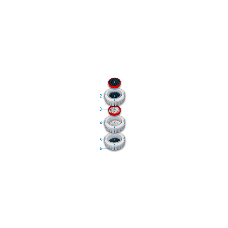 Filtración Multi EtapaLa última generación de los FX incorpora 2 NUEVAS BANDEJAS ADICIONALES para una capacidad de filtración y flexibilidad aún mayor. El FX4 cuenta con hasta 5 etapas de filtración y el FX6 con hasta 6 etapas, garantizando una calidad óptima del agua. Las cestas de los medios de filtración son el corazón de la filtración de múltiples etapas de Fluval. Dichas cestas que tienen una capacidad muy grande contienen un gran volumen de medios de filtración, y además permiten colocar los medios de filtración con una combinación personalizada de las capas que funcionen mejor para tu acuario. Éstas tienen unas manijas T de elevación instantánea las cuales permiten levantar y separar cada cesta de una manera fácil y muy rápida, haciendo más fácil el mantenimiento habitual. | ![]() | |