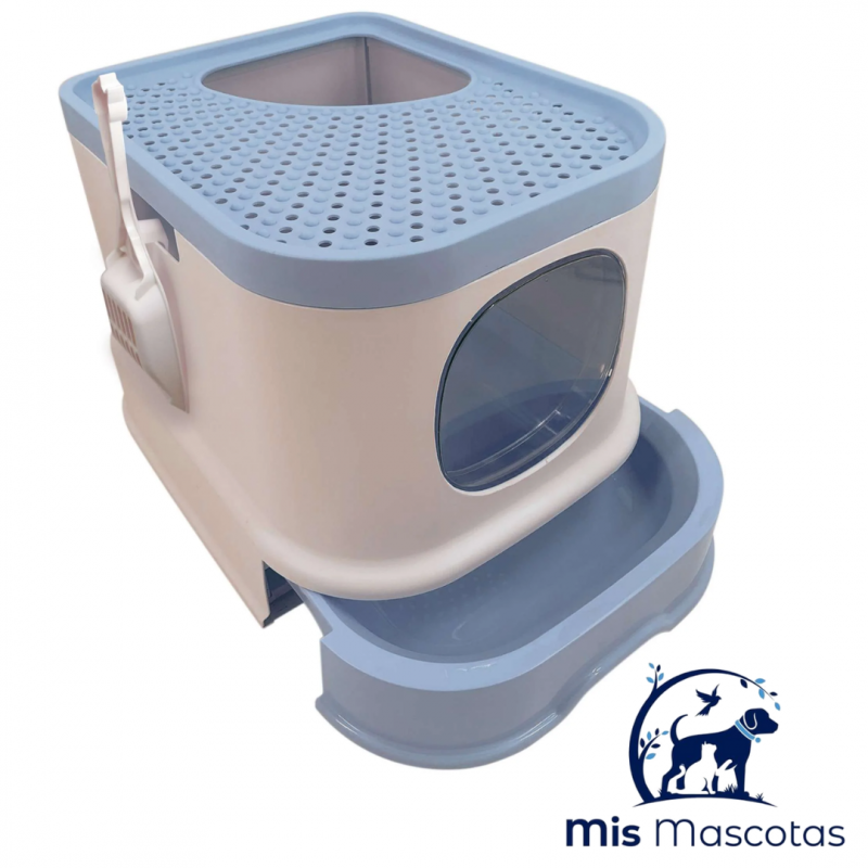 Su exclusivo diseño aprovecha mejor el espacio permitiendo una gatera más grande y amplia para que tu gato tenga toda la comodidad que necesita. La gatera incluye pala sanitaria y está disponible en cuatro colores surtidos como rosa, azul, gris y marrón.