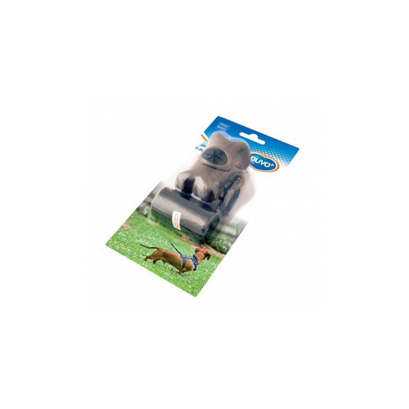 Un dispensador de bolsas para heces con 2 x 20 bolsas no puede faltar cuando pasee con su perro o durante una buena caminata. El dispensador de bolsas para heces tiene la forma de un hueso y los rollos de bolsas para heces que lo acompañan pueden introducirse en él fácilmente. Además, el dispensador puede atarse a la correa fácilmente.