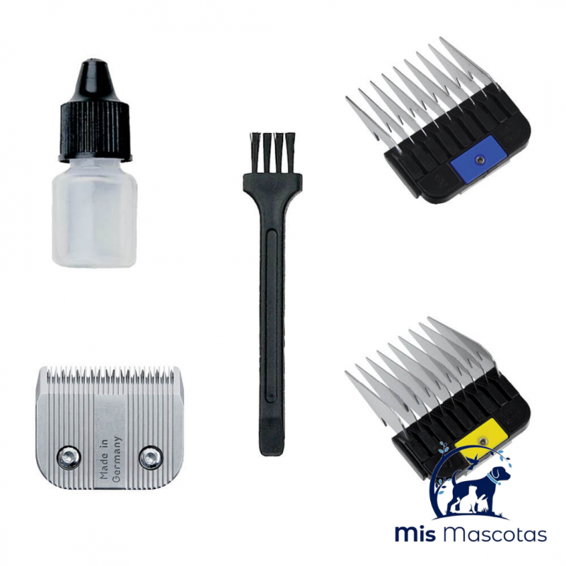 2 peines de fijación metálicos de 10 y 16, cepillo de limpieza, aceite