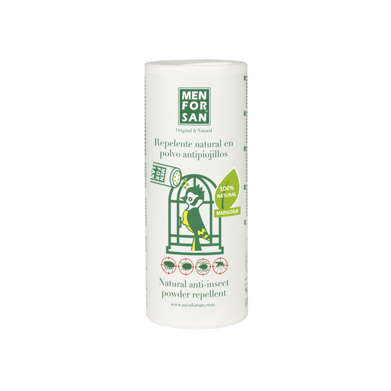 Polvo de uso directo para tratamiento contra toda clase de insectos, piojillos y ácaros que se encuentren en las plumas y también en el entono de las aves (nidos, posaderos, base de la jaula y paredes cercanas.