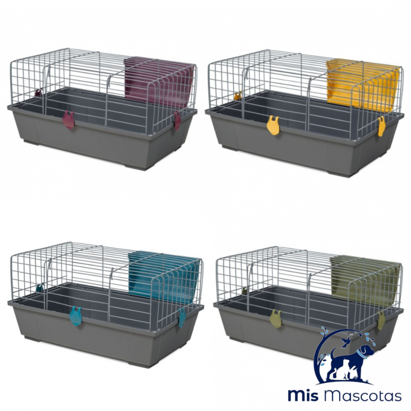 Esta jaula es un modelo básico para cobayas. Con apertura frontal. Fabricado en Europa (España), con pintura epoxi sin plomo y plástico polipropileno, no tóxico.