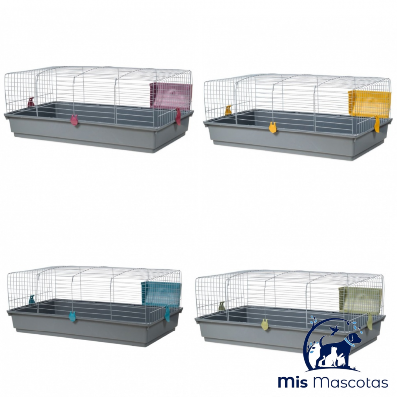 Esta jaula es un modelo básico para conejos. Con apertura frontal. Fabricado en Europa (España), con pintura epoxi sin plomo y plástico polipropileno, no tóxico.
