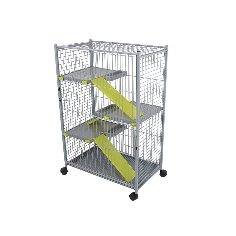 Esta jaula es práctica, grande o bonita. Ideal para conejos, chinchillas y hurones. Fabricado en Europa (España), con pintura epoxi sin plomo y plástico polipropileno, no tóxico.