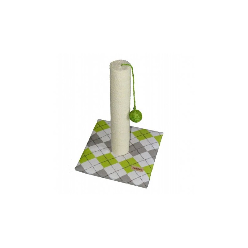 Este estupendo rascador está compuesto por una base estable, cuadrada, con un diseño de rombos, y una pelota con cuerda para que nuestro gato juegue con ella. Es un objeto que puede colocarse fácilmente en cualquier rincón de la casa. Su diseño es discreto, para adaptarse a cualquier estancia elegida.