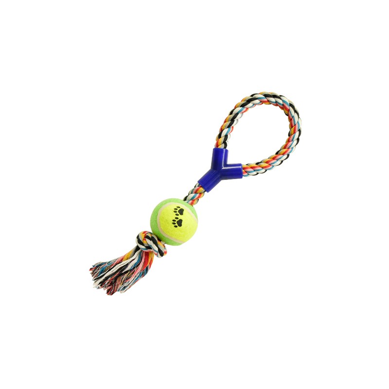 Pelota tipo tennis con cordón de hilos de algodón y pieza de plástico. Longitud