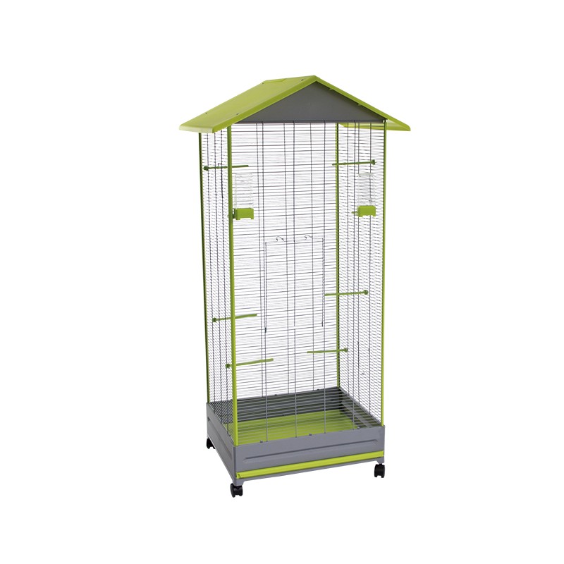 C Pajarera desmontable. Fabricado en España, con pintura epoxi sin plomo y plástico polipropileno, no tóxico. Jaula con bandeja extraíble, fácil de limpiar.