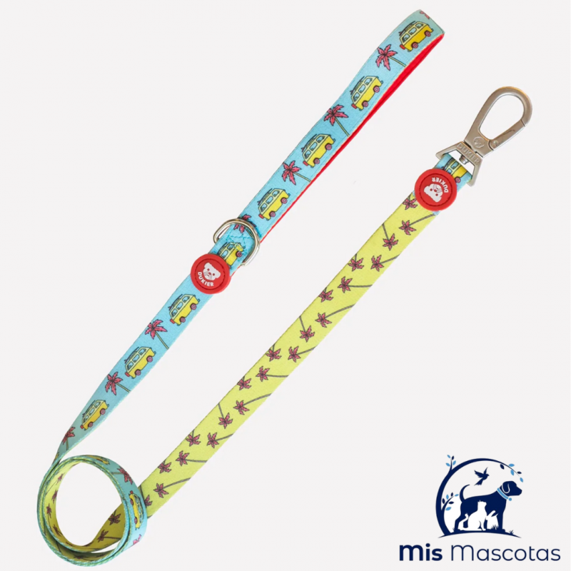 ¿Quieres sentir la brisa marina y la sombra de las palmeras en cada uno de tus paseos?. El mosquetón que incluye es duro de roer, tu perro no se escapará ni aunque quiera. Con diseños chulis a cada lado para que seáis la envidia del parque. Esta correa tampoco se olvida de ti, y hemos cubierto el asa con neopreno acolchado para que no te hagas daño.