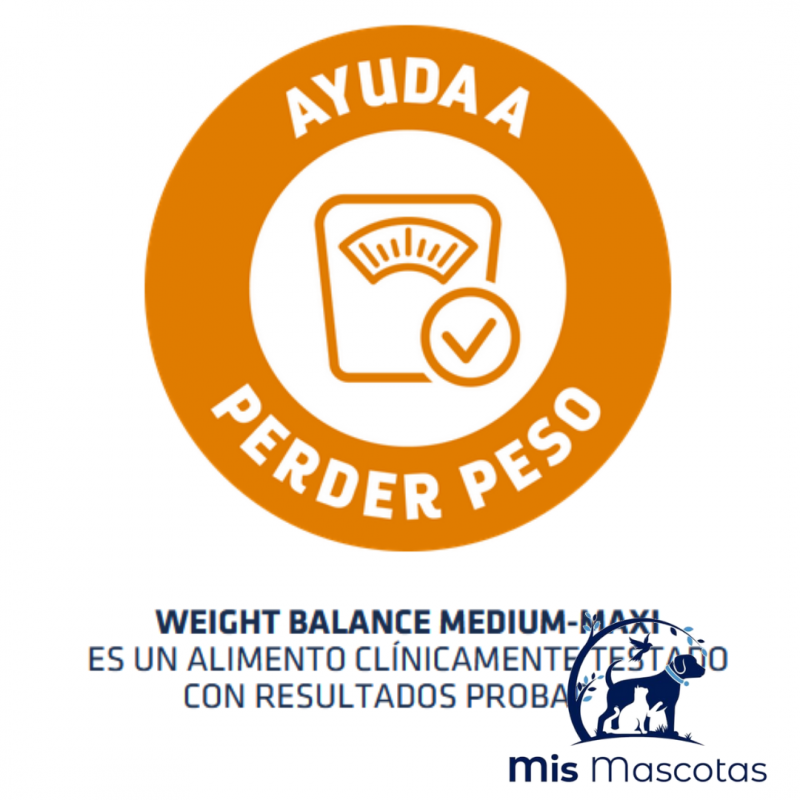 ADVANCE VETERINARY DIETS WEIGHT BALANCE MEDIUM/MAXI es un alimento dietético húmedo completo y equilibrado, CLÍNICAMENTE PROBADO, formulado para reducir el exceso de peso, con niveles bajos de energía y alto contenido de proteínas y fibra, para perros adultos de tamaño mediano y grande (>10kg).