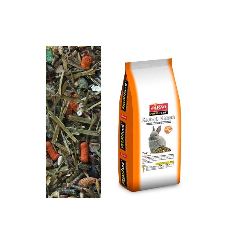 pienso complementario y extrusionados enriquecidos con vitamina C y aminoácidos (soja, maíz, zanahoria, guisante, alfalfa, Vitamina A 20.000 IE