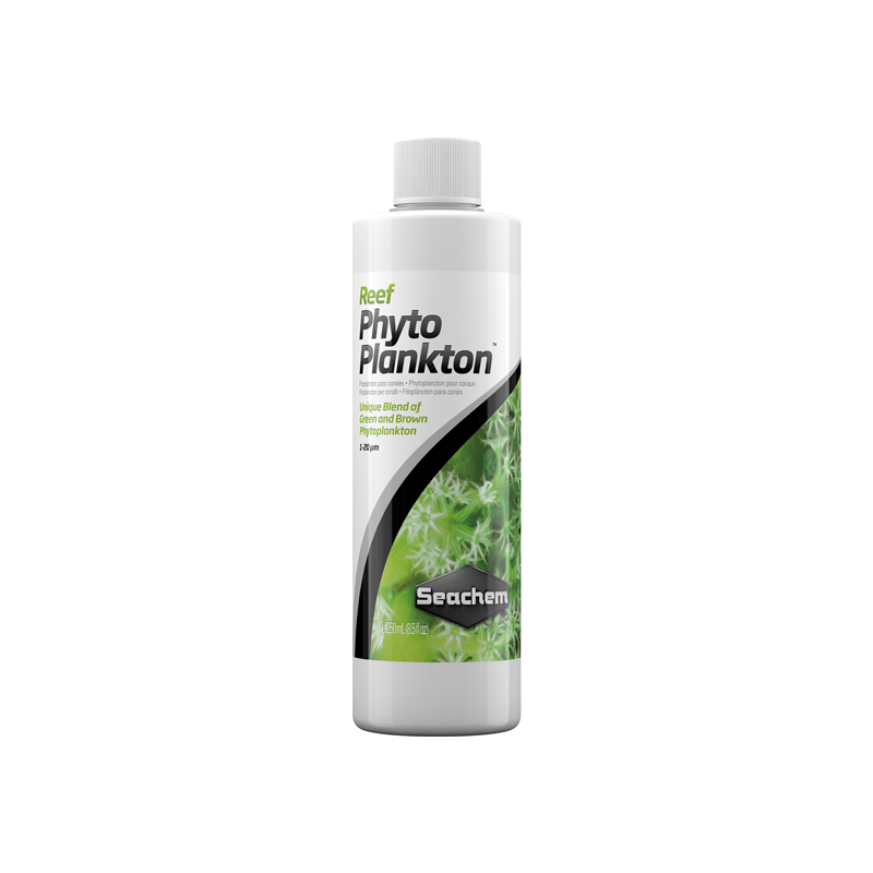 - REEF PHYTOPLANKTON™ es una mezcla concentrada de phytoplacton marino verde y marrón, diseñada para proveer los ácidos grasos esenciales, proteínas, vitaminas, aminoácidos, incluyendo carotenoides biológicos como dieta para los invertebrados.