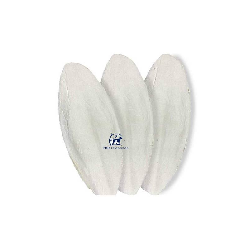 - Aportan gran cantidad de carbonato cálcico natural con la cual se forma el esqueleto de jibia. Este gran aporte de calcio complementa la alimentación de los pájaros que es deficitaria en calcio.