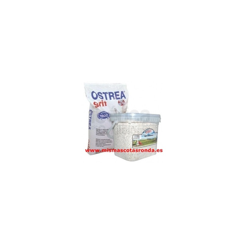 - Complemento alimenticio que aportan calcio, fósforo y otros minerales y mejora la digestión del pájaro está constituido por conchas de ostras trituradas, las cuales dan un aporte extra de calcio a los pájaros. El Grit blanco es recomendable para aves con factor rojo, ya que al no incluir carbón no elimina el pigmento.